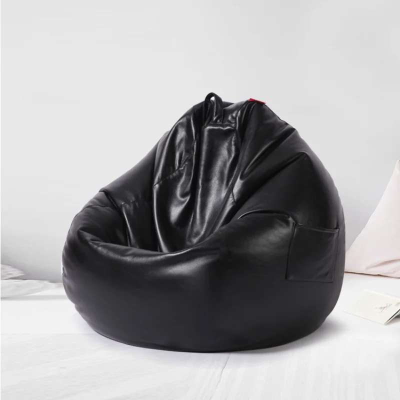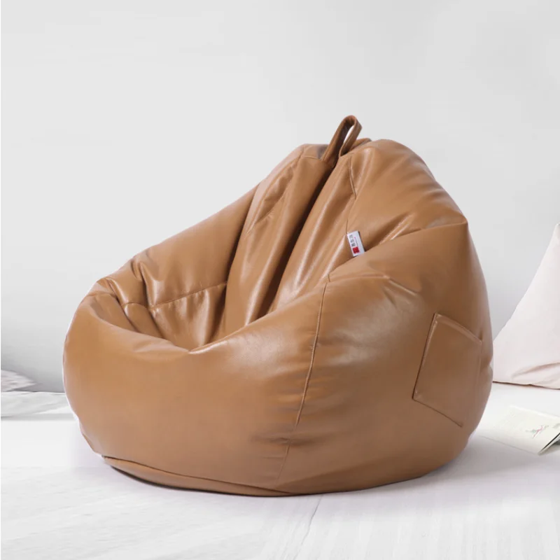 89×90 Size Single Leather Lazy Bean Sofa Cover Creative Frameless Bean Bag Living Room Bedroom Office Bean Bag No Filler