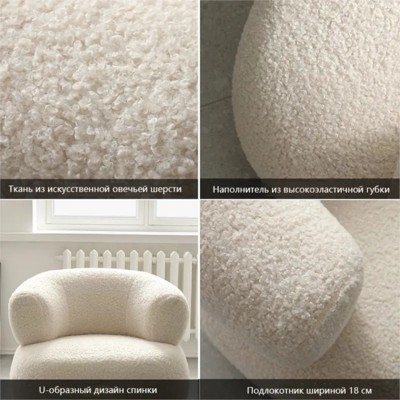 Living Room Balcony New Hot 2023 Wuli House Nordic Creative Simple Casual White Lamb Wool Lazy Small Apartment Single Sofa Chair